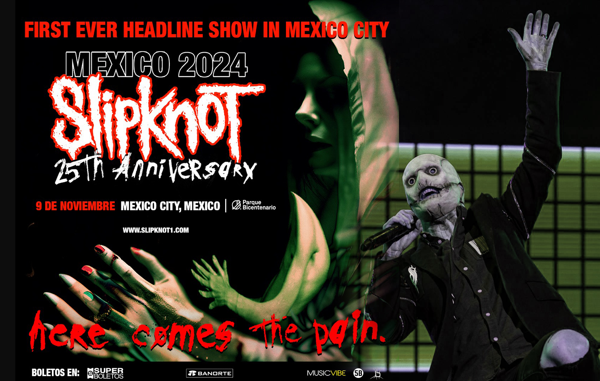 ¡Una primicia para la Ciudad de México! El renombrado grupo de metal alternativo, Slipknot, anuncia su regreso a México con dos espectáculos imperdibles. La primera parada será el 8 de noviembre en el emblemático Calle 2 de Guadalajara seguido por una noche explosiva el 9 de noviembre en el majestuoso Parque Bicentenario de la Ciudad de México.