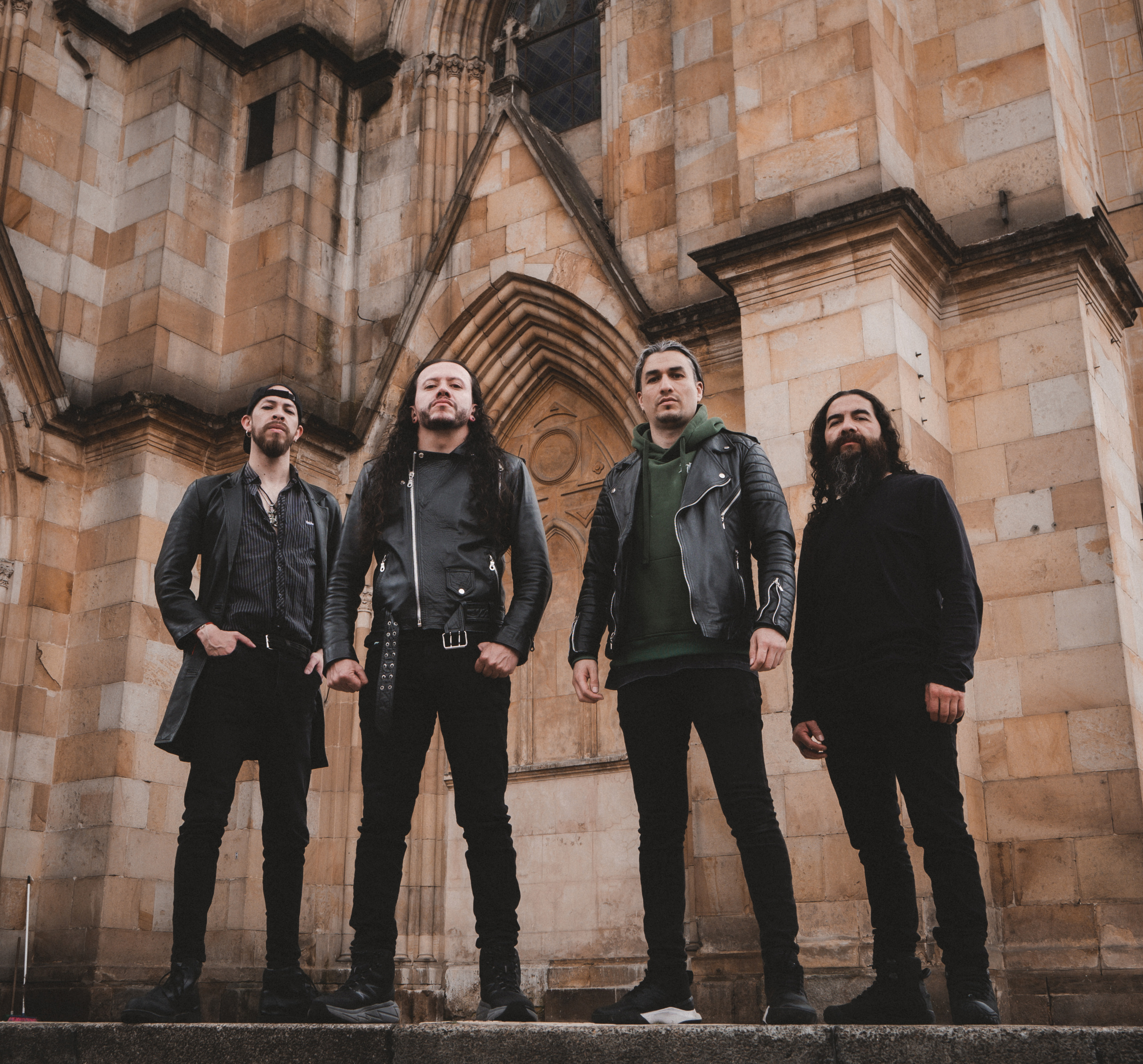Robert Marín en voz, Cristian Vargas en guitarra, Wilson Amaya en bajo y Freddy Robayo en batería. Cuatro músicos, cuatro trayectorias, una visión compartida que mezcla la agresividad del thrash y el death metal con la densidad atmosférica del doom. No es una fusión nueva en el papel, pero en la práctica suena a algo que se siente original. Hay riffs que empujan, hay momentos que se abren y pesan, y hay una intención lírica que no se queda en la superficie.